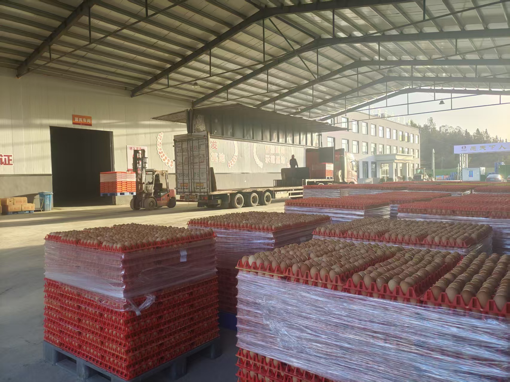 满载鲜蛋的货车从亿丰生态养殖基地装车发运,稳产保供守护民生需求